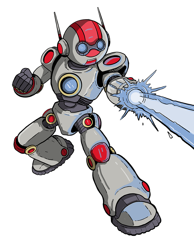 You can see pieces of Mega Man in his proportions and upgrade potential, the quirky intelligence of Fugitoid in his presence, and the isolation and mystery of Metroid in his origin.