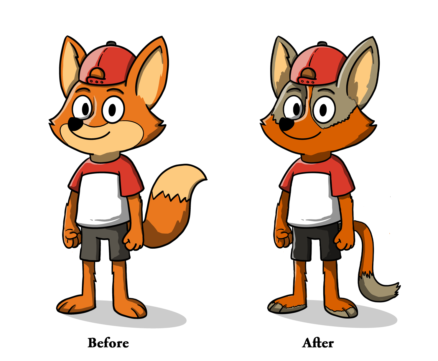 I started sketching again. What if Ember wasn’t just a fox? What if the character represented something different? Eventually the idea landed: Ember isn’t a purebred anything — he’s a mutt. A mix of fox and dog. A little wild, a little domestic. A character that doesn’t fit neatly into one box.